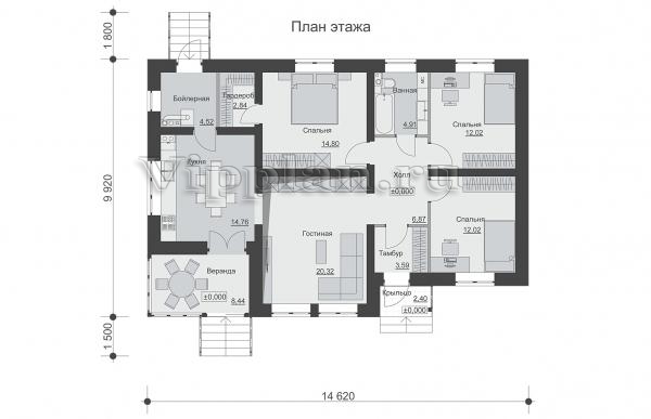 | Размеры дома: | 9.92м×14.62м |